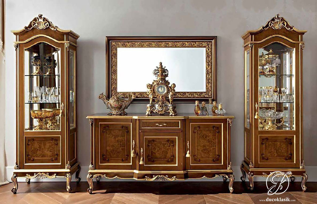 Gambar Set Bufet TV Klasik Natural Ukir Curio