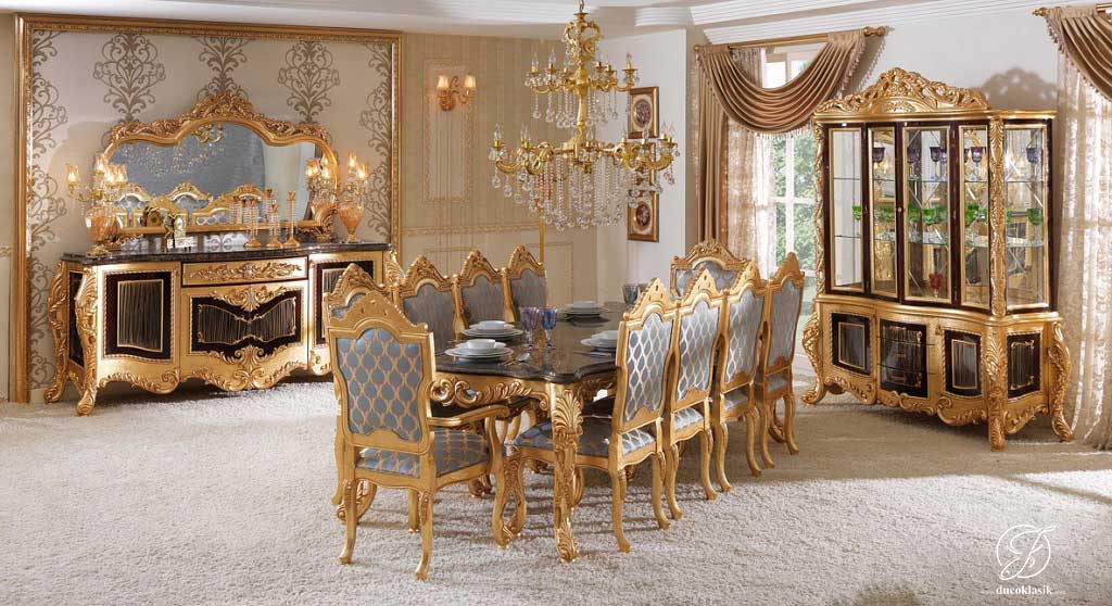 Spesifikasi Set Meja Makan Klasik Duco Emas Ciragan